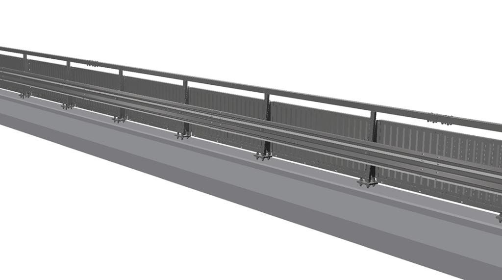 Nordic W H2 High can be installed with different types of infill. Standard infills like vertical bars, splash protection and mesh are available for parapets placed on edge beams/plinths with differing height above the bridge surface. Infills for Nordic W H2 High are CE-marked according to EN 1317–5 and approved as a part of the parapet by Rise (Notified Body). These infills are designed to withstand loads from snow removal.We also offer infills adapted to the customer’s specifications. Please contact us for further information.