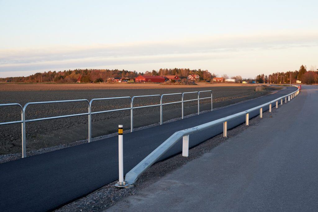 För att minska risken för skador på oskyddade trafikanter kan vägräcken förses med underglidningsskydd.